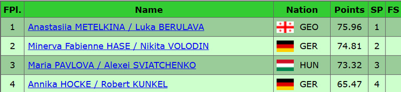 Paare: Titelverteidiger Minerva Fabienne Hase/Nikita Volodin sowie Annika Hocke/Robert Kunkel.